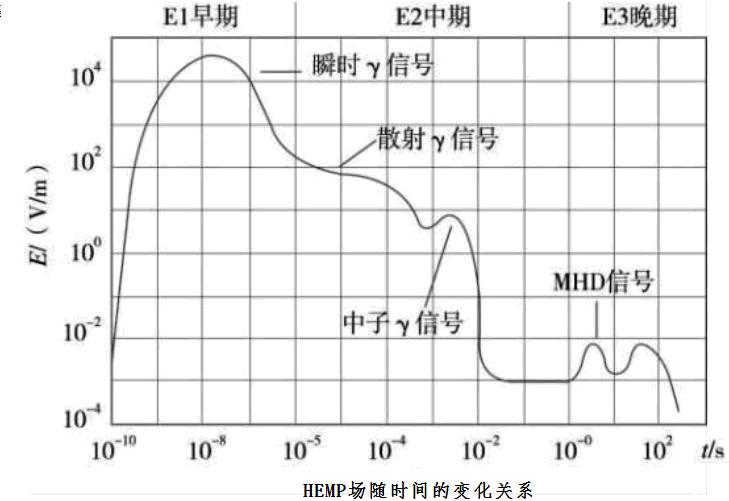 核爆以一種獨(dú)特的方式與地球磁場(chǎng)和大氣相互作用,從而產(chǎn)生電磁脈沖(EMP);在目標(biāo)區(qū)域產(chǎn)生強(qiáng)大的電磁脈沖沖擊波,電場(chǎng)強(qiáng)度從1000V/m ~10^5V/m不等,具有高電壓、高場(chǎng)強(qiáng)、頻譜寬、范圍廣的特點(diǎn),通過(guò)強(qiáng)大的輻射耦合效應(yīng),或者通過(guò)各類(lèi)線纜進(jìn)入電子、電氣設(shè)備,對(duì)設(shè)備內(nèi)部的半導(dǎo)體組件構(gòu)成強(qiáng)大的損毀效應(yīng)。